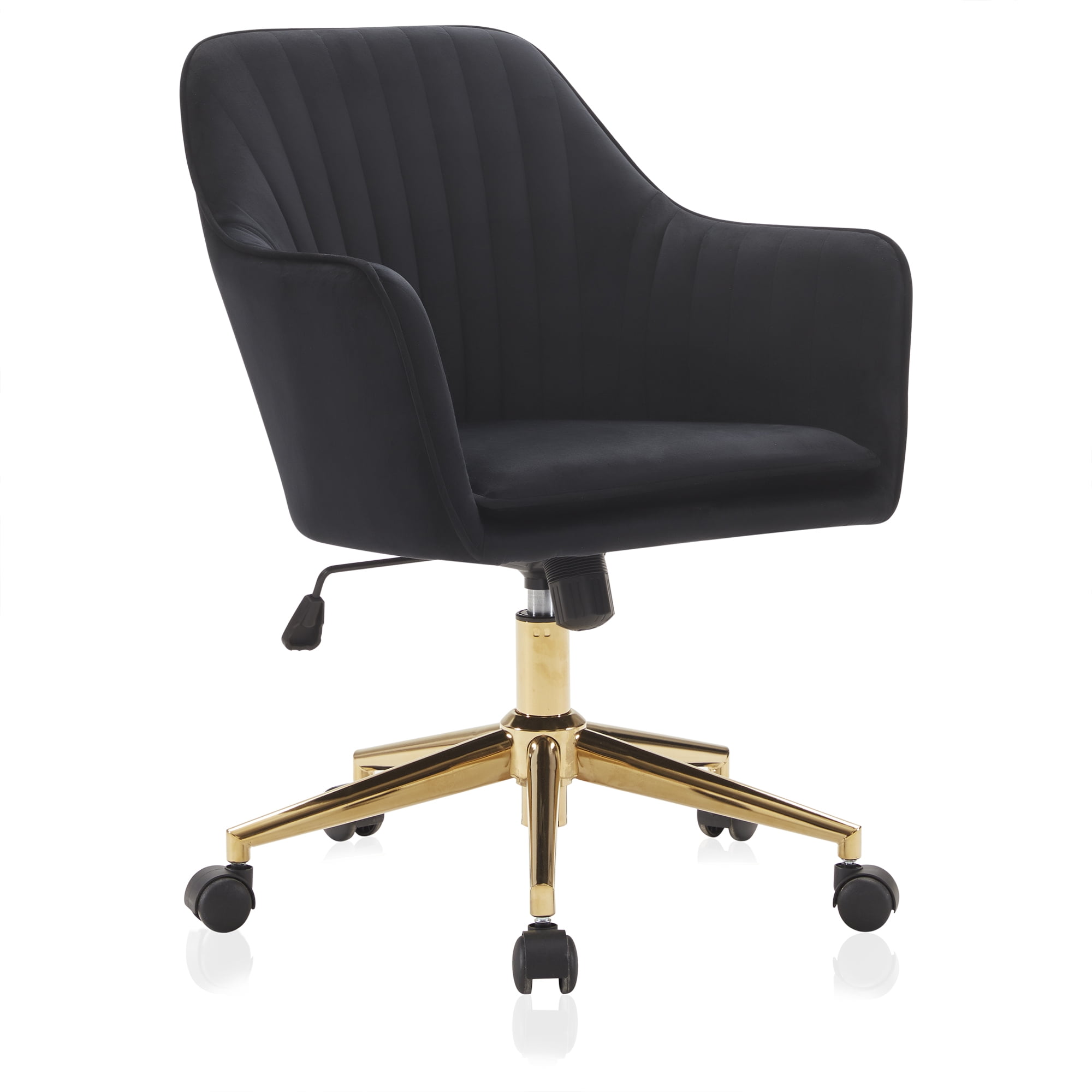 Belleze Modern Upholstered Velvet Desk Chair With Swivel Wheels And Adjustable Height Decorative Rolling Office Or Vanity Armchair Stylish Comfy Alayah Black Gold Walmart Com